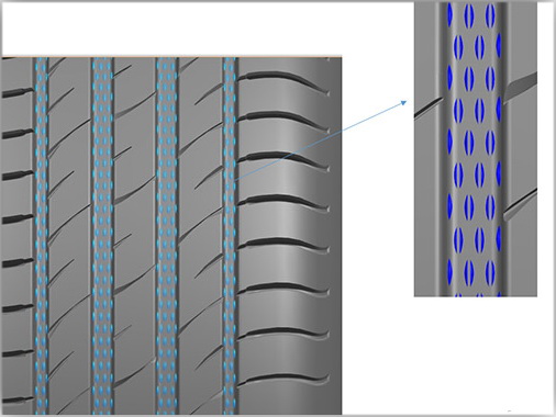 Инновационный дизайн протектора с 3D-наклонными пустотами максимизирует эффективность торможения и увеличивает сцепление с дорогой.