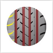 Четыре широкие продольные канавки эффективно обеспечивают дренажные характеристики и устойчивость при движении по прямой.