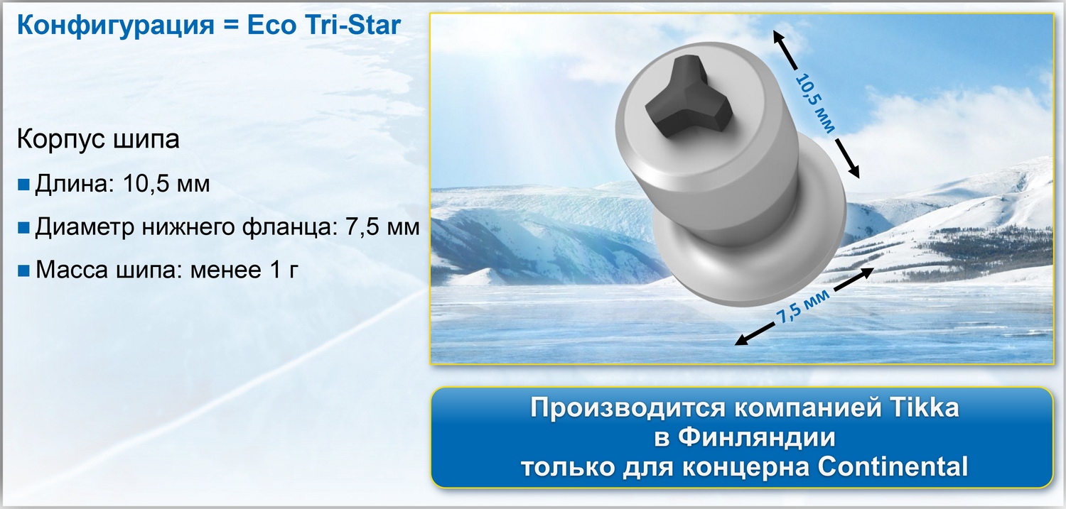 Недавно разработанные шипы Gislaved Eco Tri-Star обеспечивают значительные преимущества. Их меньший вес позволяет размещать больше шипов на одной шине, что заметно улучшает сцепление со льдом.