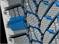 Специальные «карманы» вокруг каждого шипа способствуют отводу ледяной крошки от шипа и улучшенному сцеплению со льдом даже в условиях интенсивного торможения.