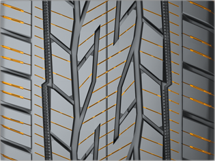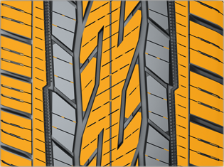Закрытый рисунок плечевого сектора протектора и барьеры от шума в центральной части протектора обеспечивают тихую и комфортную езду.