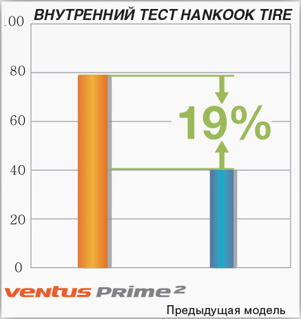 Hankook в производстве шин отдает безопасности главный приоритет, и Ventus Prime 2 здесь не являются исключением. Новейшие материалы в сочетании с самыми современными технологиями резиносмешения обеспечивают оптимальный контроль на мокрой дороге и максимальное усилие торможения. По показателям торможения на мокрой дороге шины Ventus Prime 2 превзошли предыдущее поколение - их тормозной путь уменьшился на 20%.
