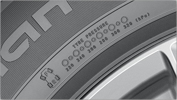 Индикатор износа протектора (DSI) на центральном ребре шины показывает остаточную глубину канавки в миллиметрах. Цифры стираются одна за другой по мере износа шины. Индикатор аквапланирования предупреждает о повышенном риске аквапланирования. Символ в виде капли воды исчезает, когда глубина канавки становится менее 4 мм.