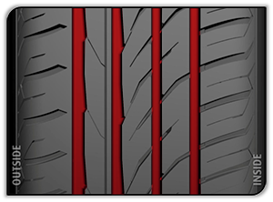 Шум, возникающий из-за элементов протектора в центре пятна контакта, был снижен за счет закрытой внешней плечевой зоны шины. Это снижение уровня шума повышает комфорт при вождении.