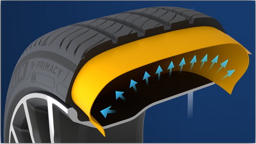 Боковые стенки благодаря инновационному дизайну поглощают меньше энергии при деформации, тем самым снижая потребление энергии. Для изготовления брекерного слоя меньшей толщины требуется меньше сырья, однако на прочностных характеристиках «зелёной» модели это не отразилось. По сравнению с шинами, имеющими стандартную конструкцию, такой подход позволил снизить сопротивление качению e.Primacy.