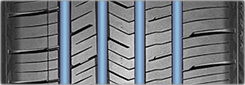 Три непрерывных центральных ребра с оптимальным распределением шашек обеспечивают стабильность при езде по прямой на высоких скоростях.