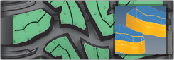 Чередование различных длин шагов протекторных блоков - запатентованная технология подавления шума улучшает акустический комфорт.