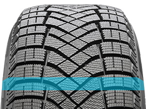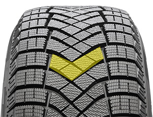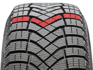 Продольные боковые канавки симметричного направленного v-образного протектора быстро удаляют водную пленку, образовавшуюся на ледяной поверхности и улучшают сцепление на мокрой дороге и льду.