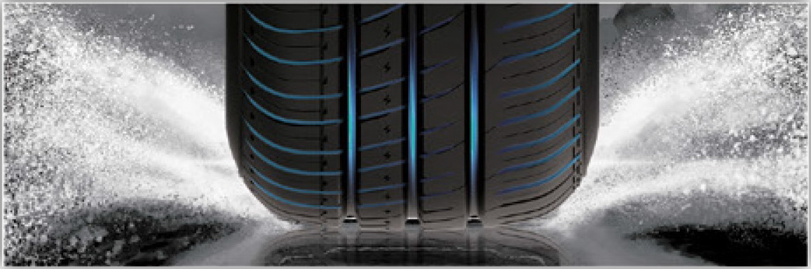 Три широких продольных водоотводящих канавки и диагональные ламели в плечевой зоне протектора помогают предотвратить аквапланирование на высоких скоростях и улучшают сцепление на мокрой дороге.