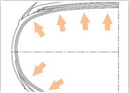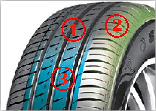 [3] — два центральных ребра повышенной жесткости отвечают за стабильную курсовую устойчивость на прямой, снижают сопротивление качению и, как следствие, улучшают топливную экономичность.