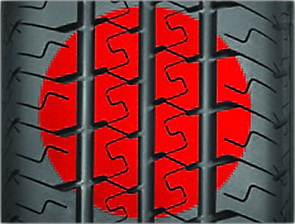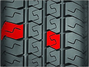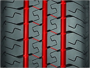 Три широкие канавки, расположенные по окружности шины, в сочетании со специальными кромками блоков и ламелями обеспечивают эффективный отвод воды из пятна контакта с поверхностью и безопасное торможение на дорогах. Одновременно они обеспечивают хорошее сопротивление аквапланированию.