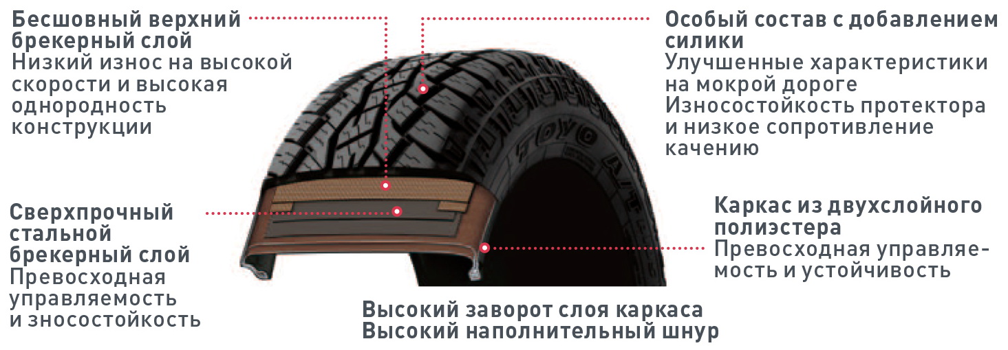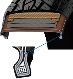Высокий заворот слоя каркаса дает отличную управляемость и устойчивость.