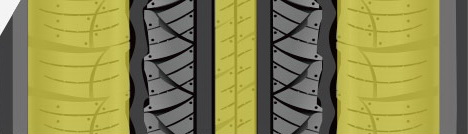 Специально расположенная плотность мелких ламелей повышает прочность кромки и рассеивает воду, улучшая износоустойчивость автомобильной шины, не забывая о комфорте и отличных показателях на мокром асфальте.