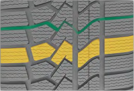 Внутренняя сторона оптимизированного асимметричного рисунка протектора включает в себя множество ламелей, которые способны эффективно прорезать водную пленку, тем самым увеличивая площадь контакта шины с обледеневшим и заснеженным дорожным полотном.