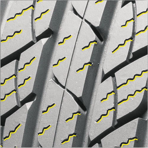 Зубчатый рисунок ламелей усиливает режущие кромки для превосходного сцепления и тяги.