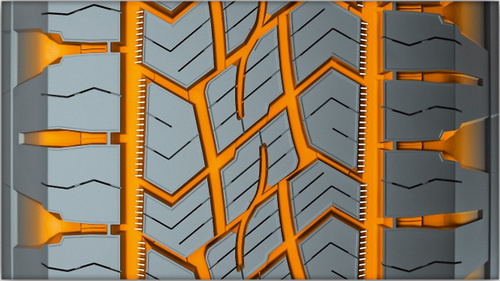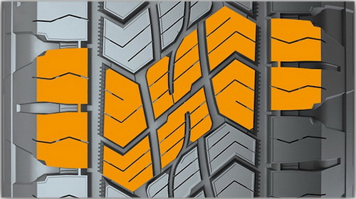 Новая полимерная резиновая смесь улучшает сцепление на скользкой дороге. Кроме того, улучшенное отведение воды повышает тягово-сцепные характеристики, сокращая тормозной путь на мокром покрытии.