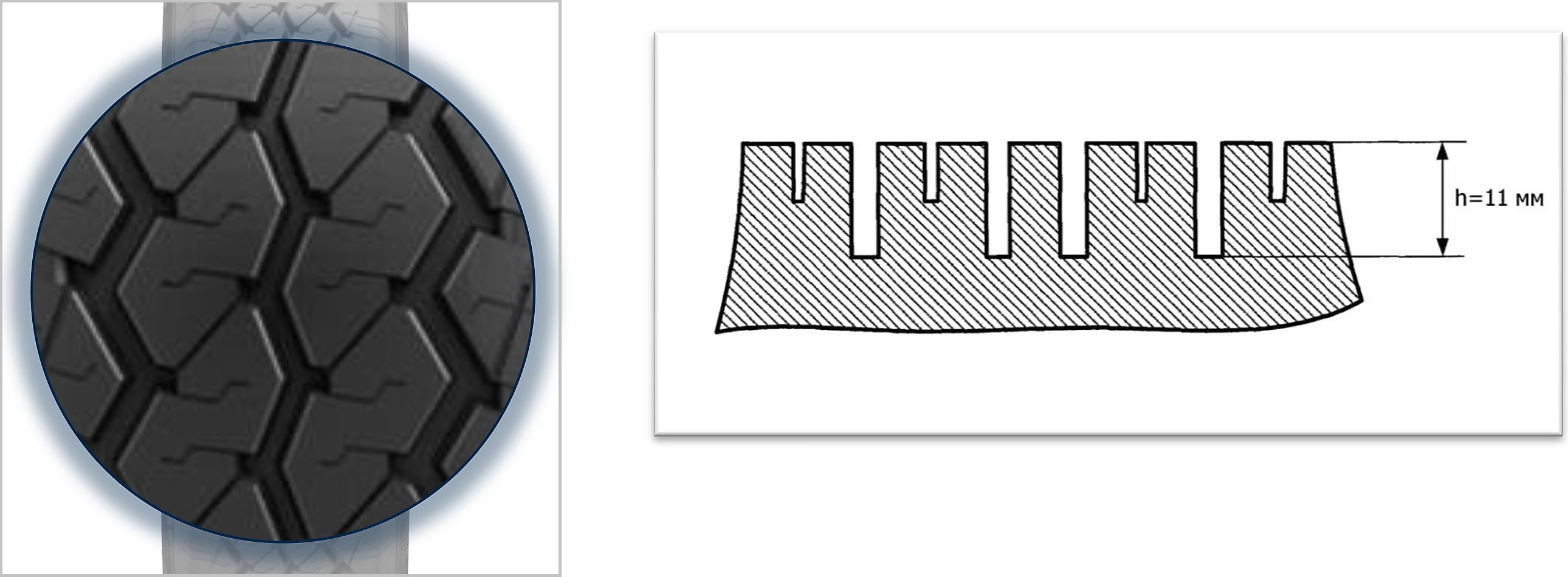 — двухслойная конструкция протектора - беговая (изнашиваемая часть) из специальной резиновой смеси и подканавочный слой из резины с минимальными гистерезисными потерями обеспечивает эксплуатационную надежность, безопасность и экономичность шины;