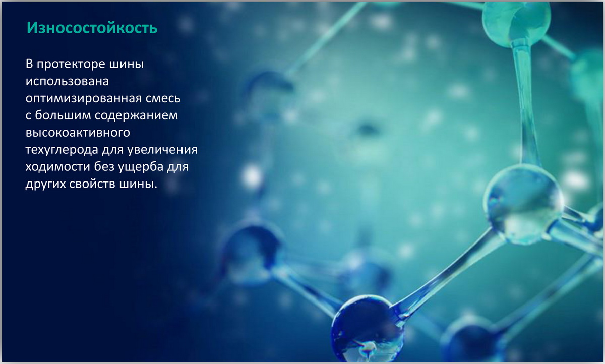 Глубина рисунка протектора шины увеличена на 12% относительно предыдущей модели, что увеличивает в среднем ходимость шины на сезон.