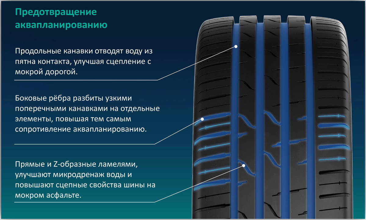 Защитит от аквапланирования и сохранит курсовую устойчивость на мокрой дороге.