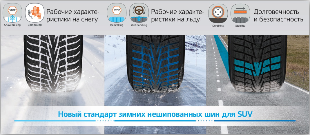 Зимние шины HANKOOK RW10 Winter i*Cept X обеспечивают хорошую маневренность на высоких скоростях: «Ключевым требованием в процессе разработки шины стала ее конструкция. Из-за более высоких нагрузок, переносимых внедорожником, и необходимости удовлетворения требованиям высокого суммарного индекса нагрузки в сочетании с высокими скоростями, долговечность конструкции шины, естественно, становится очень важной характеристикой. Кроме того, мы уделили особое внимание характеристикам, которые удовлетворят требованиям автомобиля, как на мокром, так и на сухом дорожной покрытии», - рассказывает Клаус Краузе, руководитель Европейского Научно-исследовательского центра Hankook.