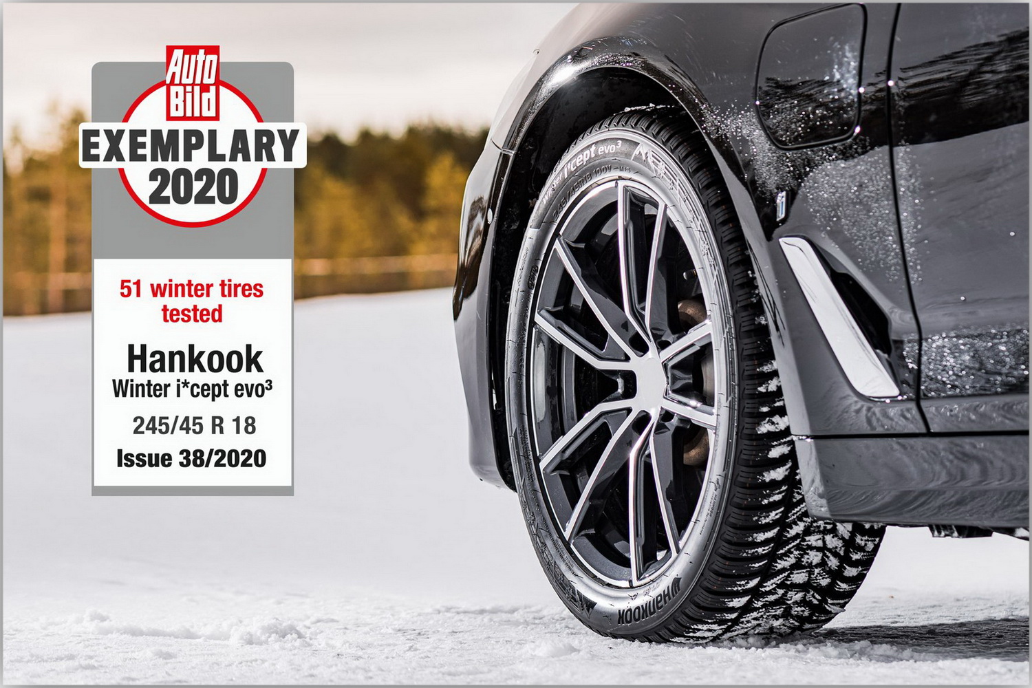 Об этом также свидетельствует последнее испытание зимних шин от ведущего автомобильного журнала Европы. В своем выпуске № 38 от 17 сентября 2020 года журнал Auto Bild протестировал в общей сложности 56 шин размером 245/45 R18 100V на BMW 5 серии. По итогам только шесть протекторов шин были безоговорочно рекомендованы и получили наивысшую оценку «образцово», в их число вошла шина Winter i*Cept evo³ от Hankook.