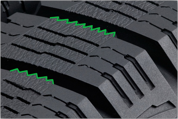 В шине IKON Nordman RS2 SUV для нарезки ламелей используется специальная пресс-форма, которая формирует клиновидные ламели. Подобная форма ламелей не позволяет им деформироваться и отгибаться на критические углы. Это улучшает сцепление и обеспечивает отличные зимние эксплуатационные характеристики.