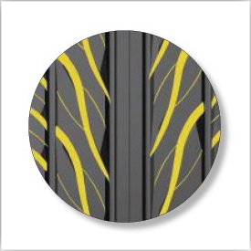 Четыре центральных канала предназначены для эффективного отвода воды из зоны пятна контакта и обеспечения надёжного сцепления шины на мокрой поверхности.