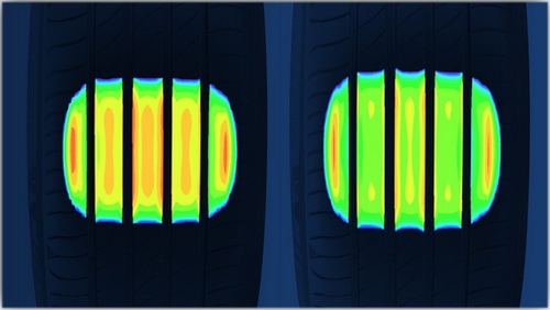 Высокий уровень сцепления шины с дорогой благодаря равномерному распределению давления при ускорениях, торможениях и маневрировании на протяжении всего срока службы шины.