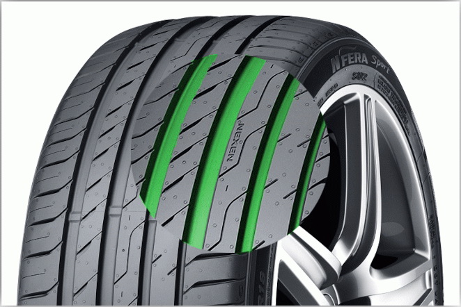 NEXEN N`Fera Sport — это спортивная шина премиум-класса, которая обладает высокими характеристиками сопротивления к аквапланированию, благодаря широким канавкам и асимметричному рисунку. Шина N`Fera Sport также демонстрирует отличные высокоскоростные характеристики на мокрой и сухой дороге. Кроме того, трехмерные канавки в плечевых зонах протектора значительно улучшают стабильность и управляемость на высоких скоростях за счет оптимального пятна контакта. При изготовлении шины N`Fera Sport используется новый состав, который улучшает эксплуатационные характеристики.