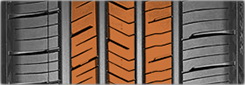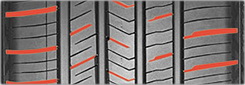 Три непрерывных центральных ребра с оптимальным распределением шашек обеспечивают стабильность при езде по прямой на высоких скоростях.