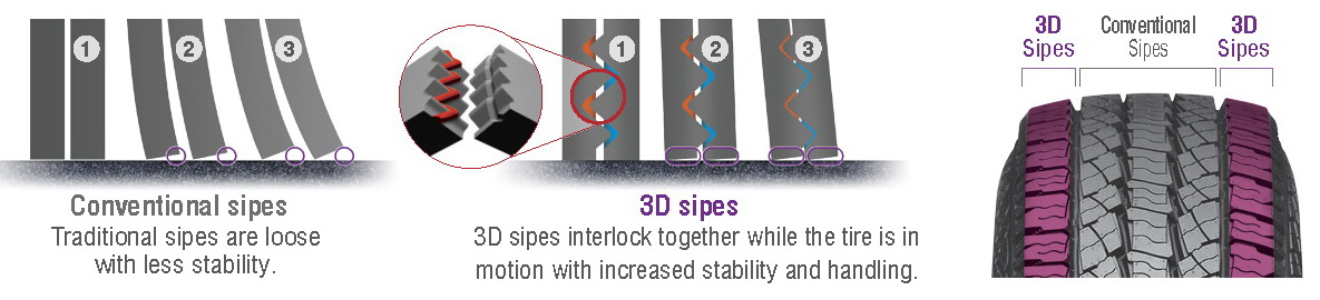 NEXEN Roadian AT 4x4 обладают рисунком, разработанным для оптимальной управляемости как на асфальте, так и на бездорожье. 3D-ламели увеличивают тяговое усилие и сокращают длину тормозной дистанции, агрессивный дизайн плечевой зоны и боковых стенок улучшает проходимость в условиях офф-роуда, а высокая жесткость блоков делает шины более выносливыми и долговечными.