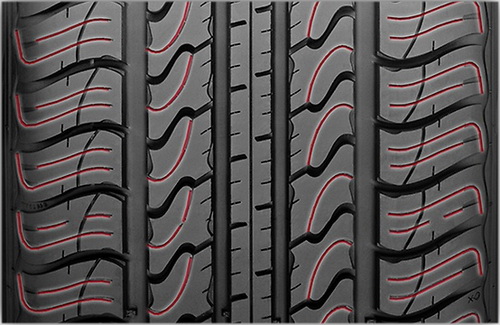 Большое количество волнообразных ламелей, соответствующих рисунку протектора, позволяют блокам слегка смещаться вовнутрь и наружу. Снижение уровня шума от шины повышает комфорт при вождении.