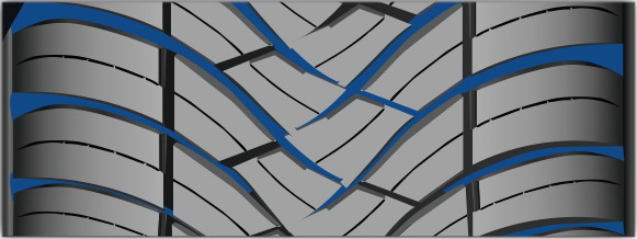 Резина протектора с высоким содержанием диоксида кремния и использованием новейших полимеров обеспечивает высокий коэффициент сцепления на мокрых и заснеженных дорогах.