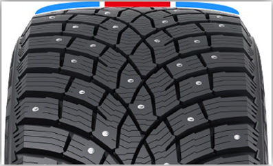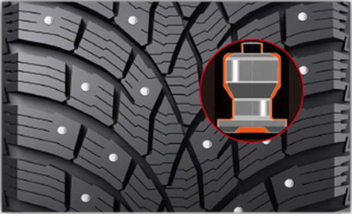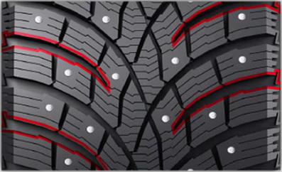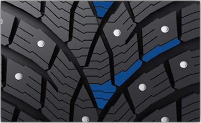 В блоках протектора расположены шипы с облегченным дизайном, который усиливает эффективность разгона и торможения на льду и снегу, при этом уменьшая повреждения дорожного полотна. Таким образом, повышается уровень безопасности при одновременном уменьшении ущерба дорожной инфраструктуре.