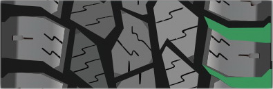 Поперечный дизайн обеспечивает расширенное пятно контакта с дорожной поверхностью, хорошее сцепление на бездорожье и высокую износостойкость..